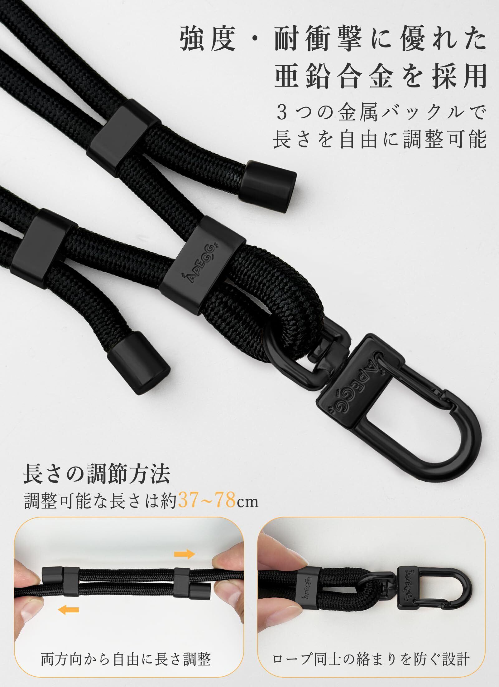 [APEGG] スマホストラップ 携帯ストラップ 肩掛け 斜め掛け 首掛け 丸紐6.5mm 長さ調節可能 スマホショルダー ストラップホルダー2枚付き 全機種対応 紛失・落下防止 軽量