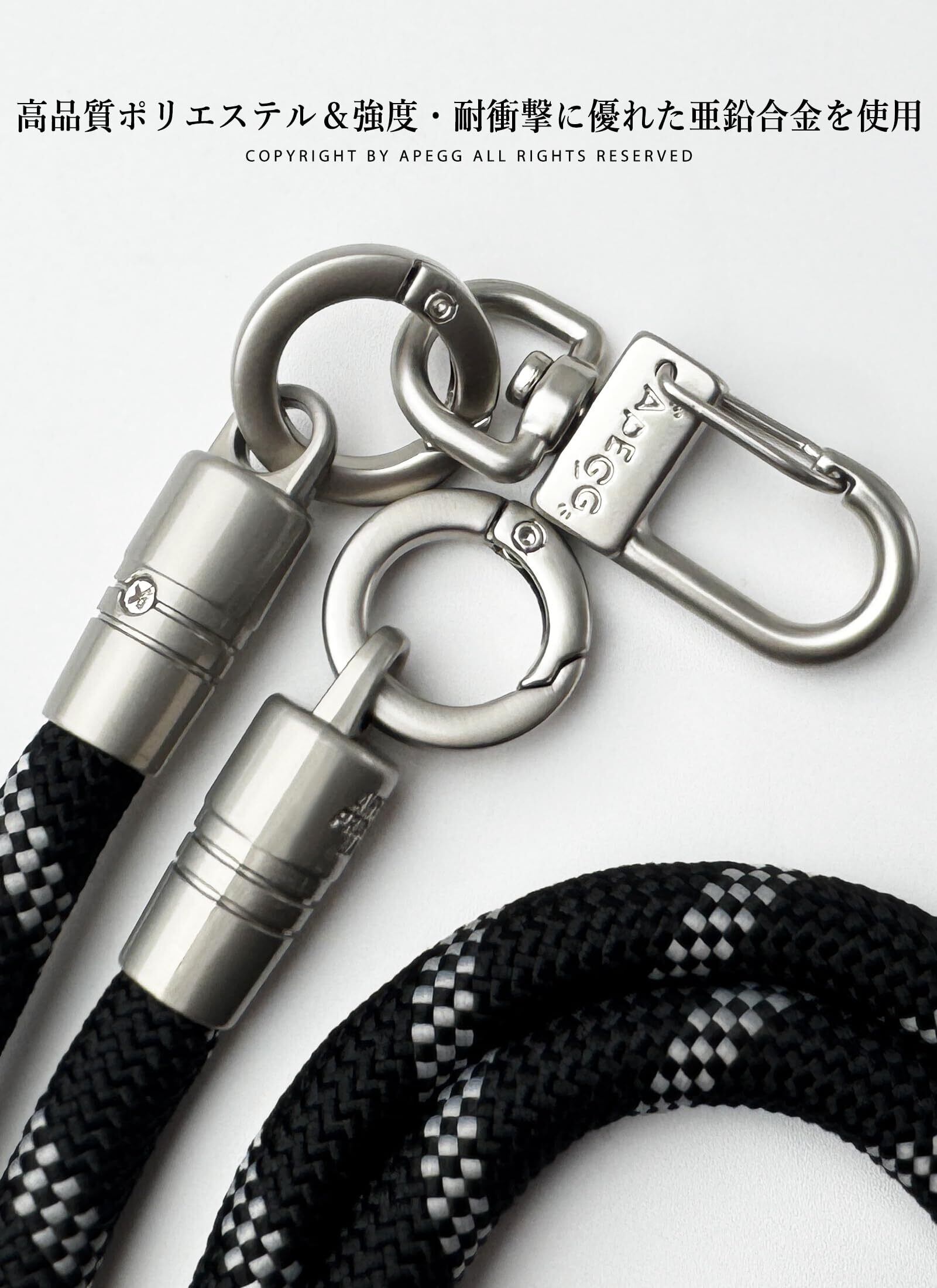 ■【使いやすさとスタイルを兼ね備えたスマホストラップ!】「[APEGG] スマホストラップ」は、120cmの調節可能なデザインで、首掛け、肩掛け、斜め掛けのスタイルが楽しめます。シンプルで洗練されたブラック×グレーの組み合わせが魅力で、アウトドアや日常使いにもぴったりです。