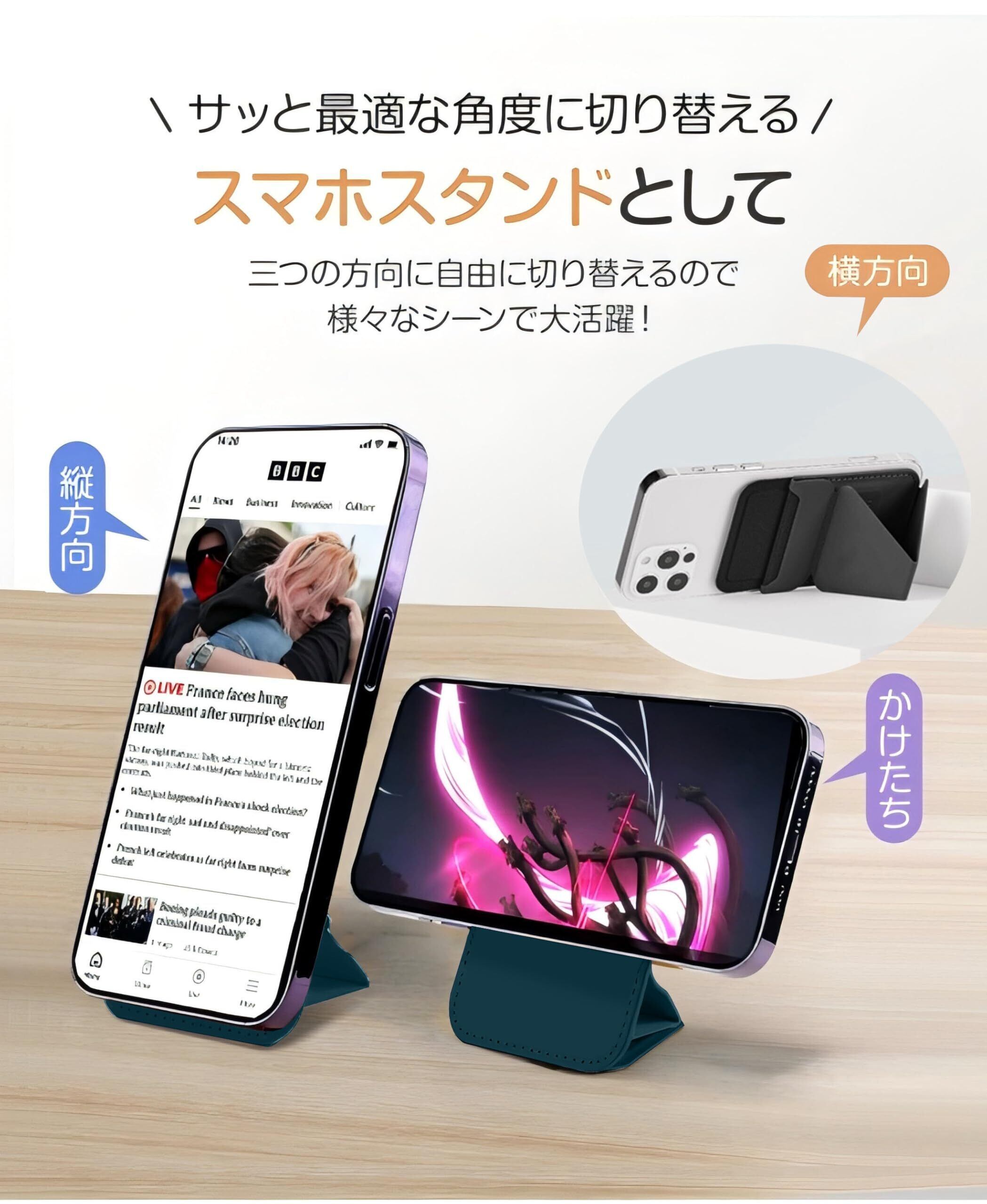 【在庫処分】Denaisii スマホ カードケース スマホスタンド カード入れ 簡単カード収納 Magsafe対応 【耐久&磁力強化版】iPhone 15 iPhone14 iPhone13 iPhone12 MagSafe対応 傷や汚れに強い マグネット カードケース 折り畳み式 最大2枚収納 2枚メタルリング付 iPhoneスタンド マグネット 磁石 磁気吸着 薄型軽量 持ち歩き便利 ミニマリスト(緑) | SmartLiving+