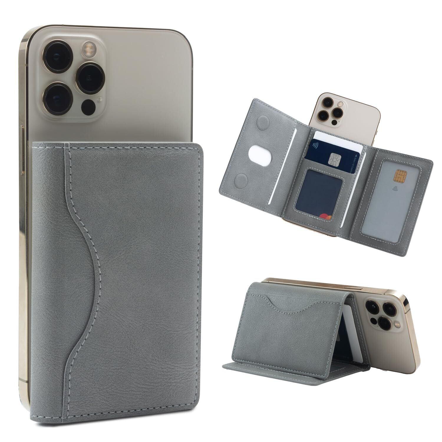 【人気商品】【enique】Magsafe カードケース 【最大6枚カード・紙幣収納】 マグネット 三つ折り スタンド機能 レザー 上質な手触り 薄型 軽量 suica PASMO icoca iPhone 16/15/14/13/12シリーズ 日本企業 メンズ レディース (グレー) | SmartLiving+