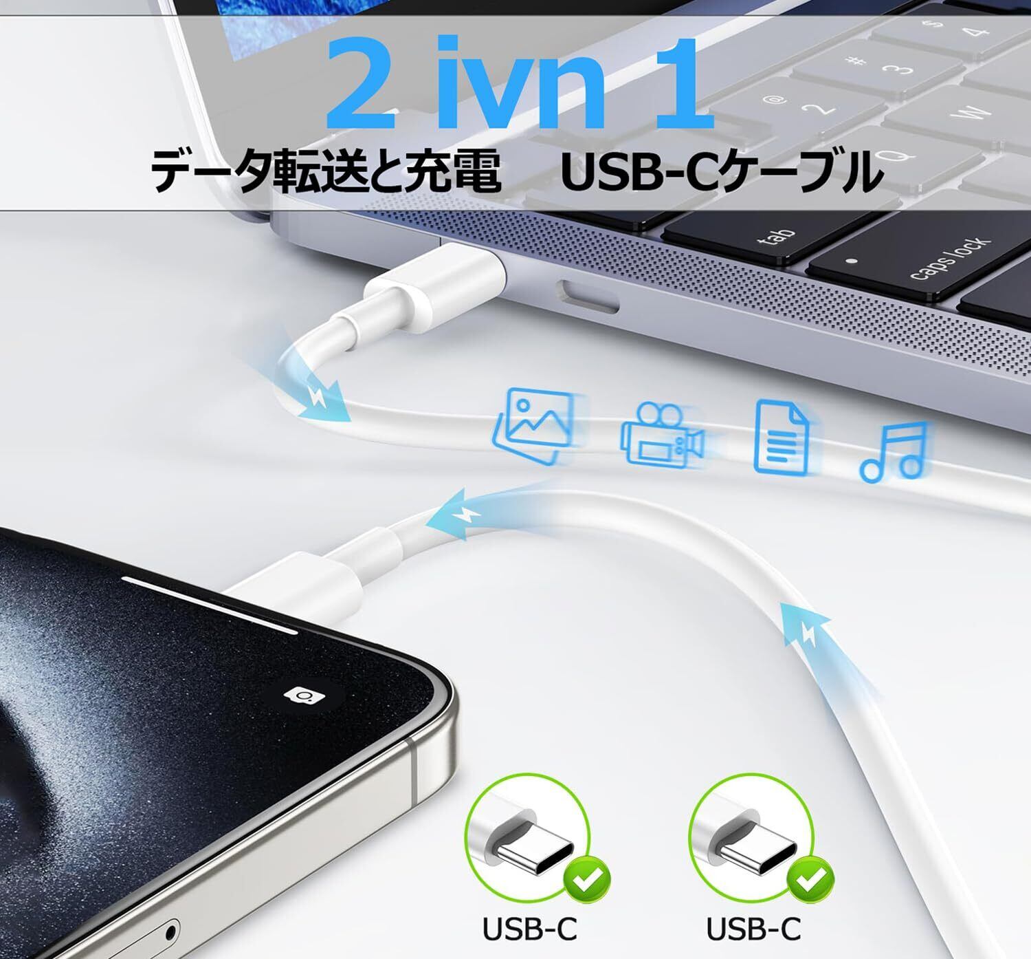 USB C ケーブル 2M 2本 PD対応 60W急速充電 【PSE認証】 USB C to C コード 純正品 type-c ケーブル 高速データ 断線防止 iPhone 17/16/15 Pro/Plus/Pro Max、MacBook Pro/Air、iPad Pro/Airなどtype-c機種対応 充電コード(ホワイト)