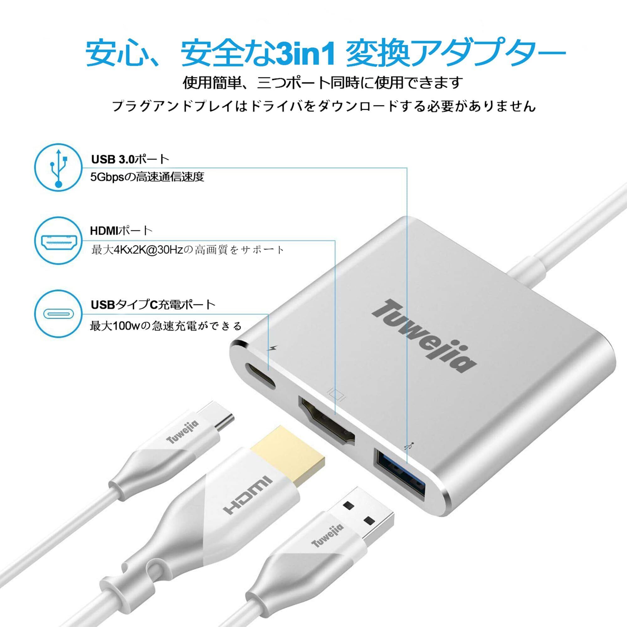 「Tuwejia USB Type C HDMI アダプタ」で、充実した映像体験と便利な急速充電をお楽しみください!在庫セールの今がチャンス、お見逃しなく、即ご購入を!