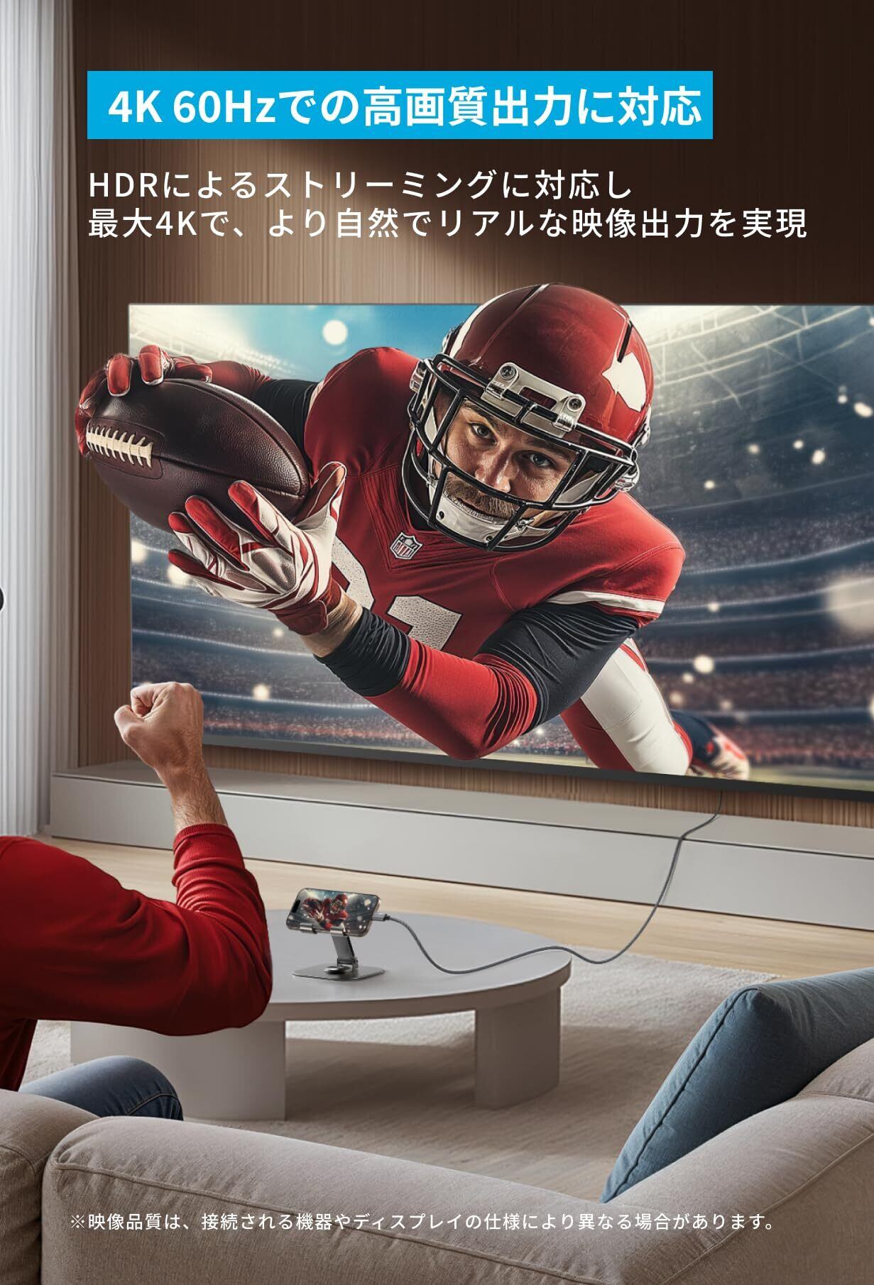 ■特徴:4K 60Hz映像出力、耐久性ナイロン、安定した接続