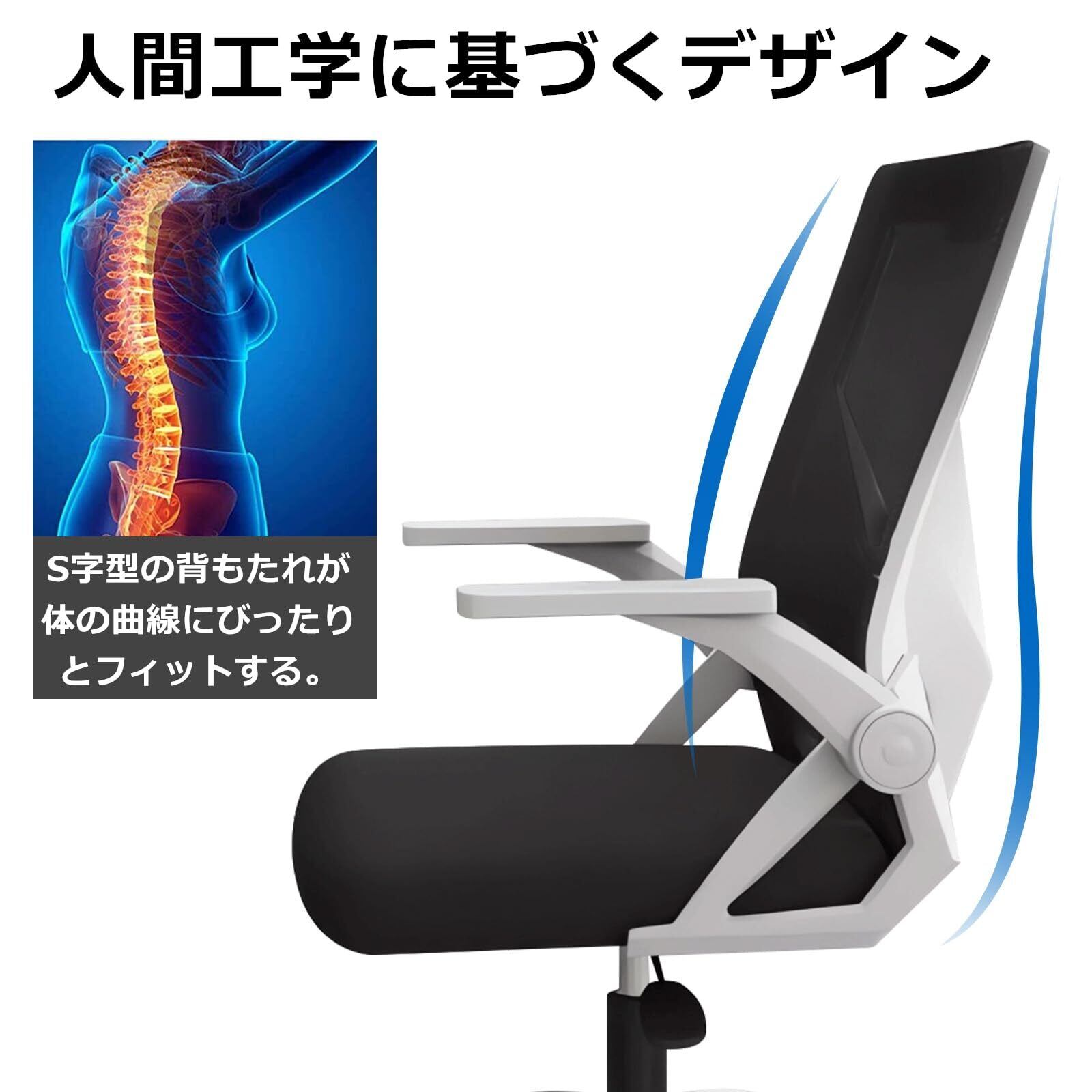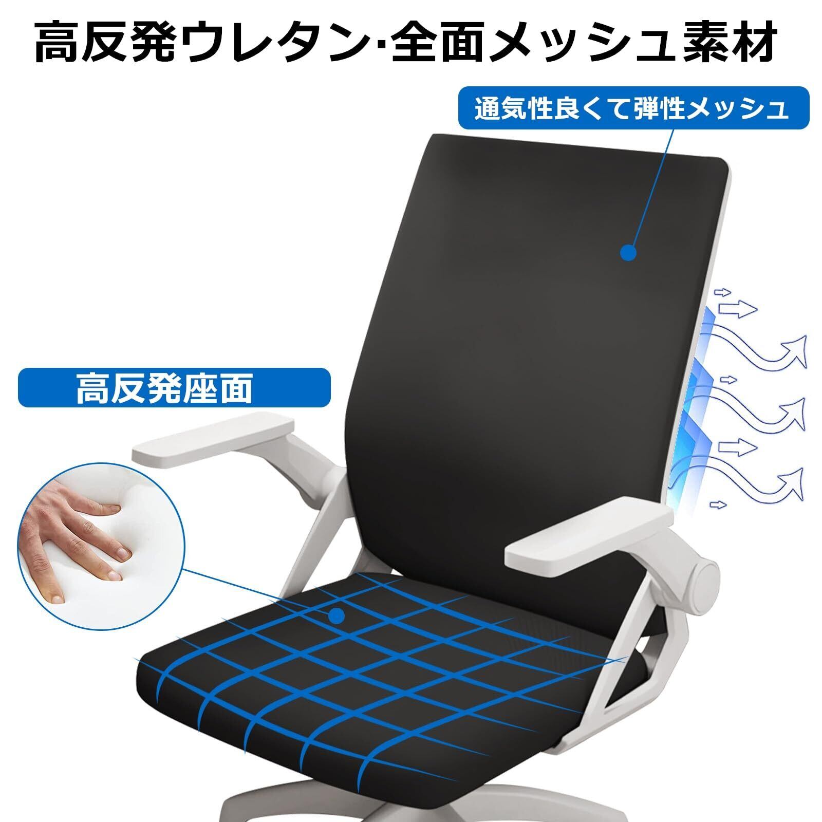 ■【通気性に優れたメッシュ素材使用!】背もたれには通気性の良いメッシュ素材を採用しており、季節を問わず快適な使用感を提供します。蒸れを防ぎ、集中力を維持できるため、長時間の作業でも安心です。