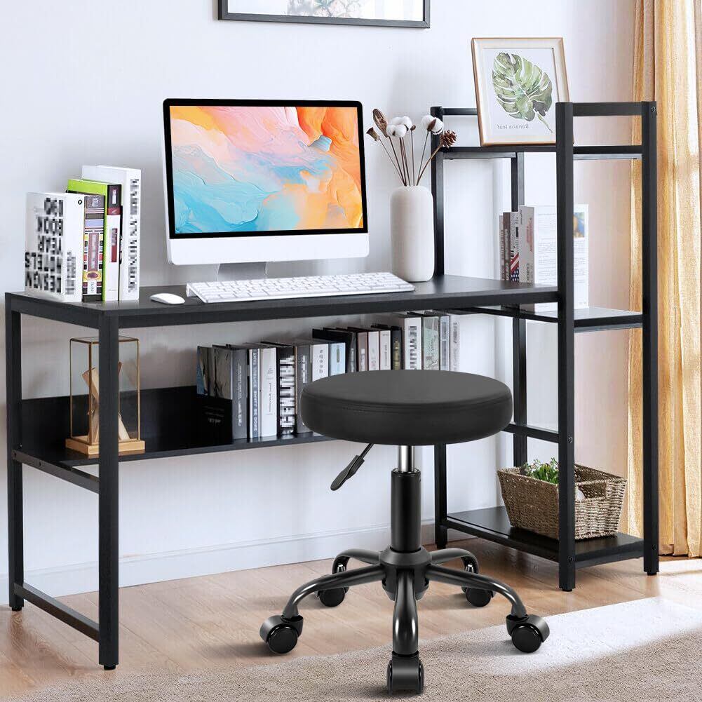 KKTONER スツールキャスター付き 丸スツール 高さ調整可能 PUレザー ネイル椅子 Spa Drafting stool いす Sサイズ 黒