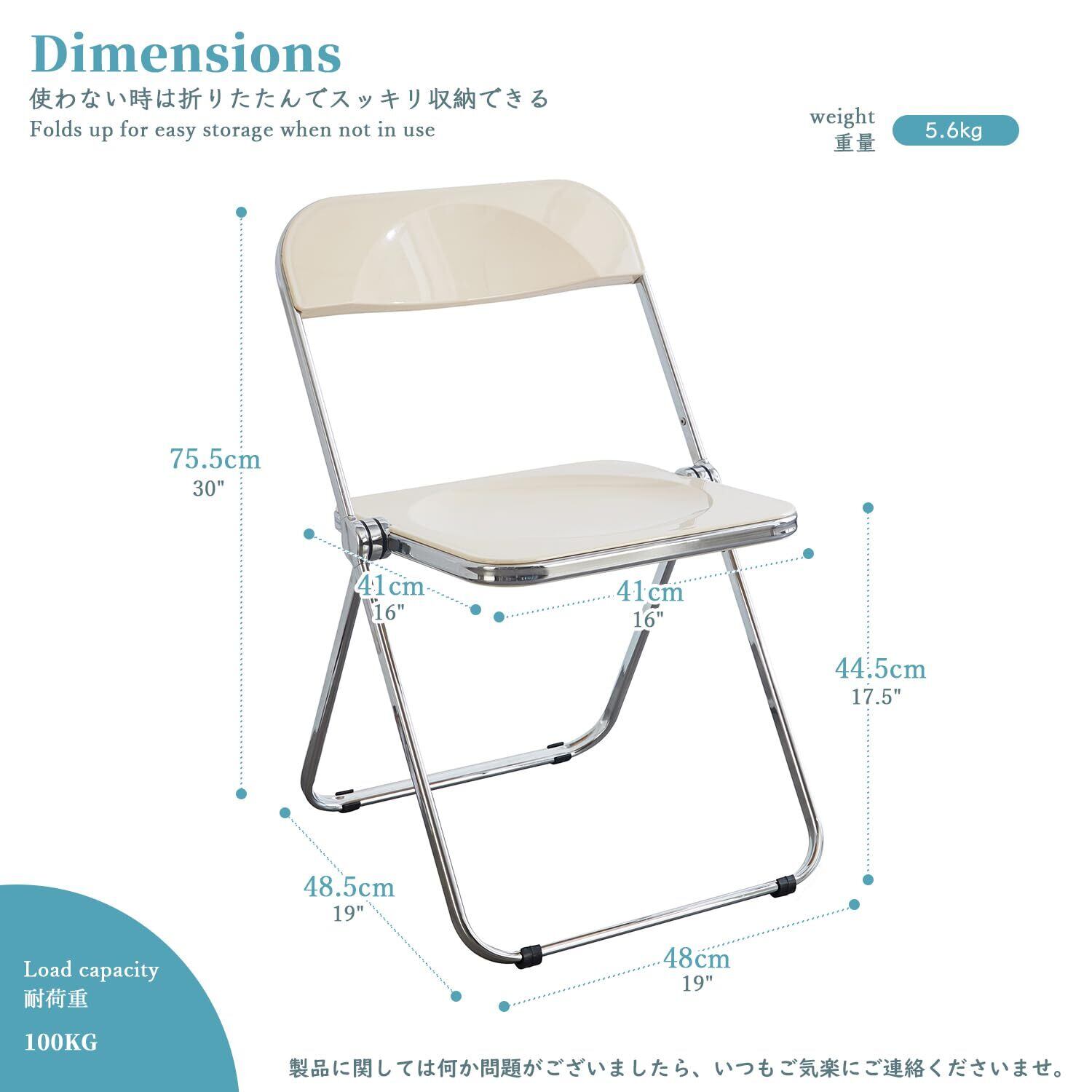 素材:PP+スチール製、サイズ:48×48.5×75.5cm、重量:5.6kg、耐荷重:約100㎏。製品に関しては何か問題がございましたら、いつもご気楽にご連絡くださいませ。