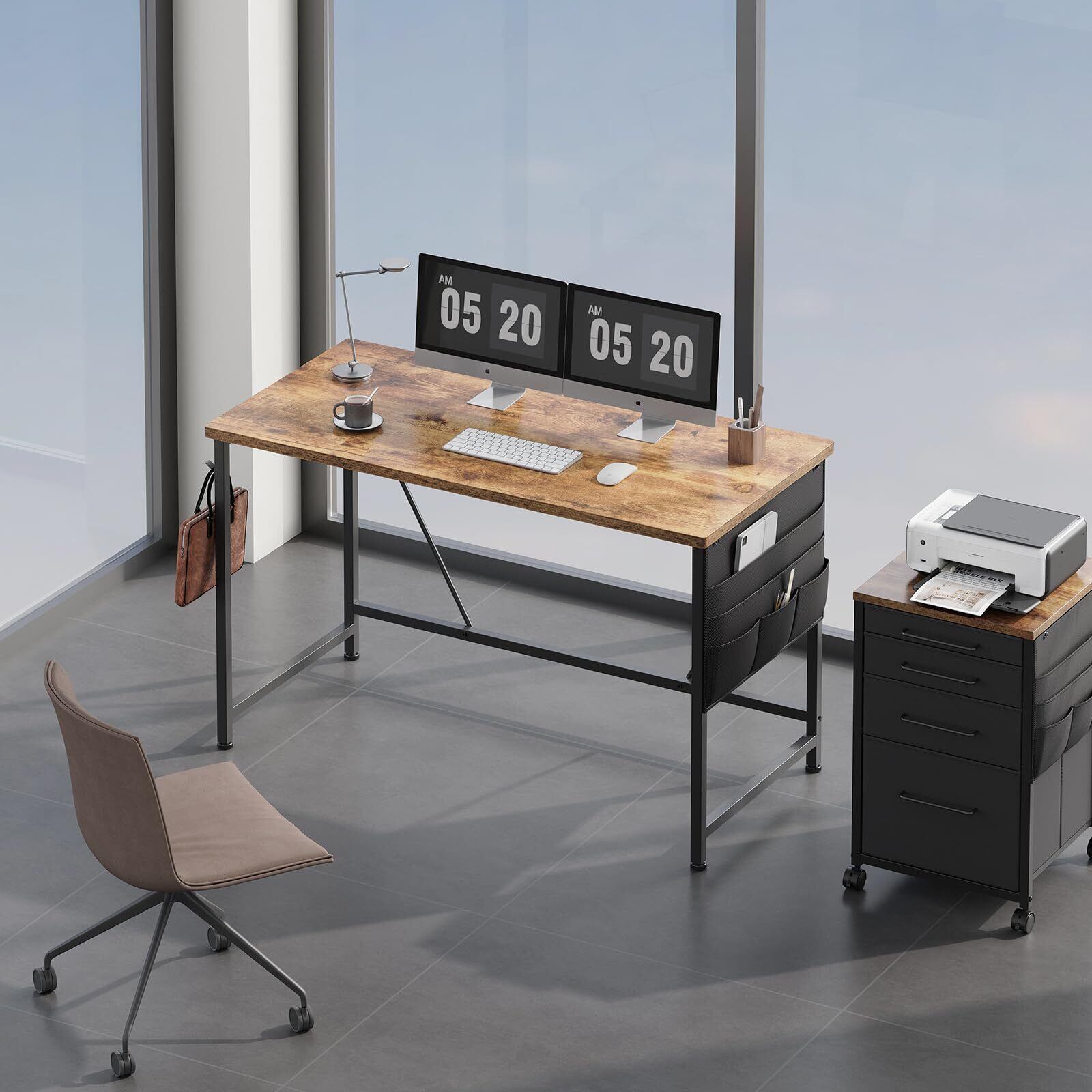 YeTom 机 デスク パソコンデスク pcデスク 幅120*奥行55cm つくえ 収納袋付き勉強机 フック付き学習机 組立簡単 テレワーク ビンテージ