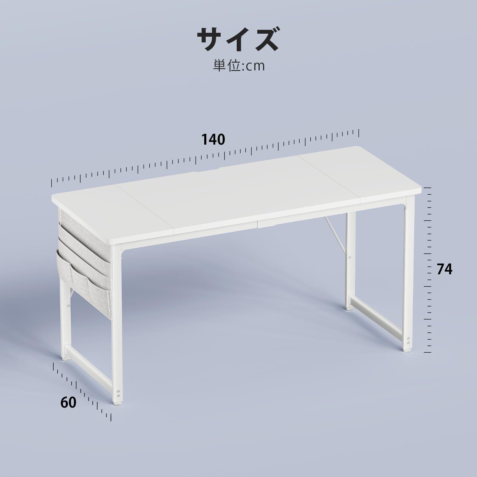 【在庫処分】YeTom 机 デスク パソコンデスク pcデスク 幅140*奥行60cm つくえ 収納袋付き勉強机 フック付き学習机 組立簡単 テレワーク ホワイト