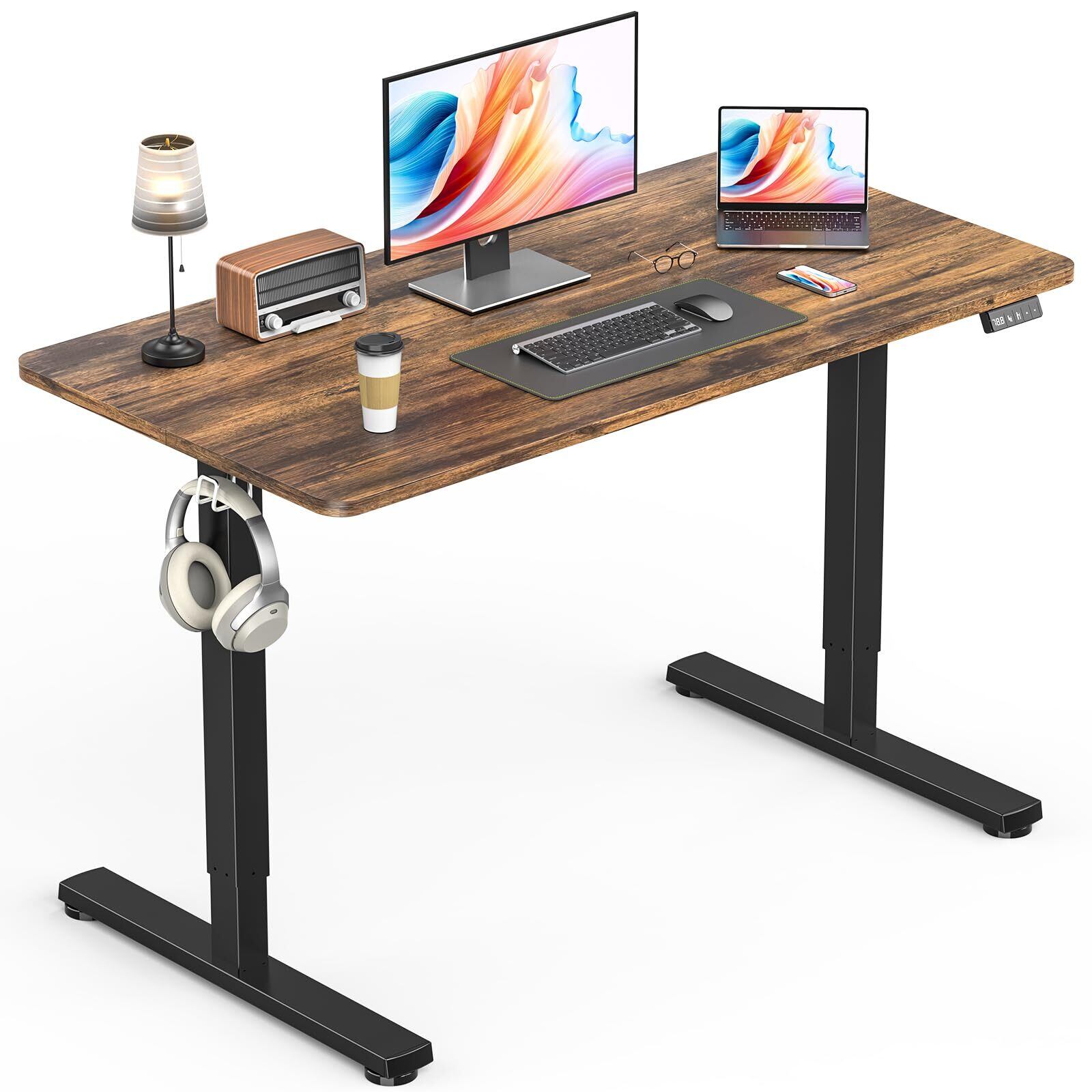 Zontera 電動 昇降デスク 高さ調整72-118cm 上下昇降デスク(幅100cm x 奥行き60cm)は 二つのパターンメモリー機能を備えています 静音設計 収納フック付き テーブル 耐荷重80kg(ブラウン)